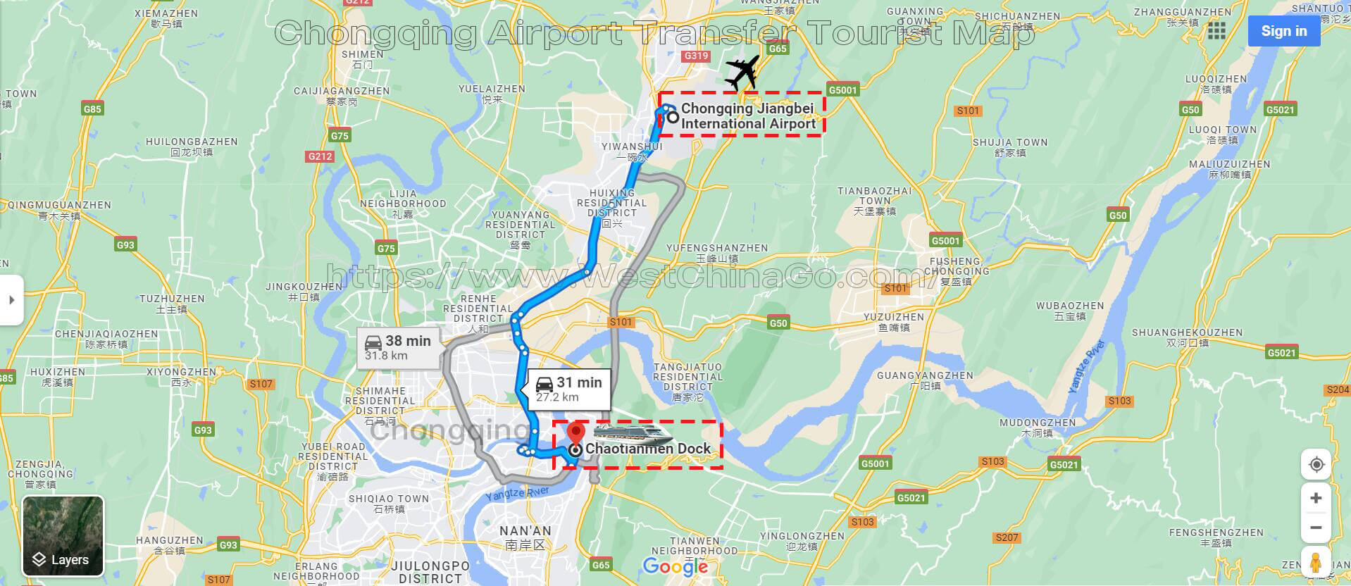 - Airport: Chongqing Jiangbei intl Airport (CKG)